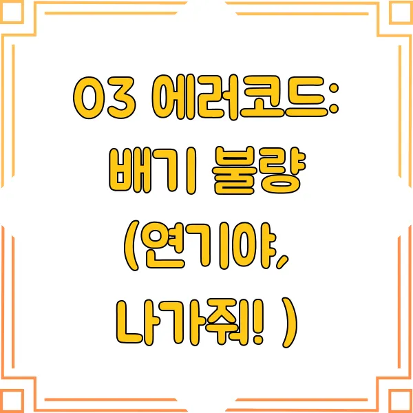 배기가 제대로 안 되면 일산화탄소 중독 위험이 있으니 정말 위험해요! ⚠️ 03 에러코드 발생 시, 즉시 창문을 열고 환기시킨 후 다음을 확인하세요!