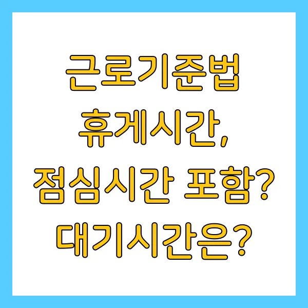 직장 생활의 꿀 같은 휴식, ☕ 근로기준법이 보장하는 휴게시간! 나의 권리, 제대로 알고 챙겨야겠죠? 🤔 4시간 일하면 30분, 8시간이면 1시간! 점심시간은? 대기시간은? 애매한 상황 속 똑 부러지는 휴게시간 계산법, 지금 바로 알려드릴게요! 💖 워라밸 사수를 위한 필수 정보, 놓치지 마세요! 😉 (키워드: 근로기준법, 휴게시간, 점심시간, 대기시간, 워라밸)