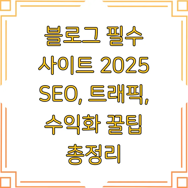 블로그로 성공하고 싶으신가요? 🎯 SEO, 트래픽, 수익화, 이 세 마리 토끼를 잡아야 진정한 블로그 고수! 😎 2025년 최신 정보로 꽉꽉 채운 꿀팁 대방출! 지금 바로 확인하고 블로그 운영에 날개를 달아보세요! 🚀 키워드 연구부터 수익화 전략까지, 핵심만 쏙쏙! 골라 담았습니다. 초보 블로거도 따라 할 수 있는 쉽고 간단한 꿀팁들, 절대 놓치지 마세요!